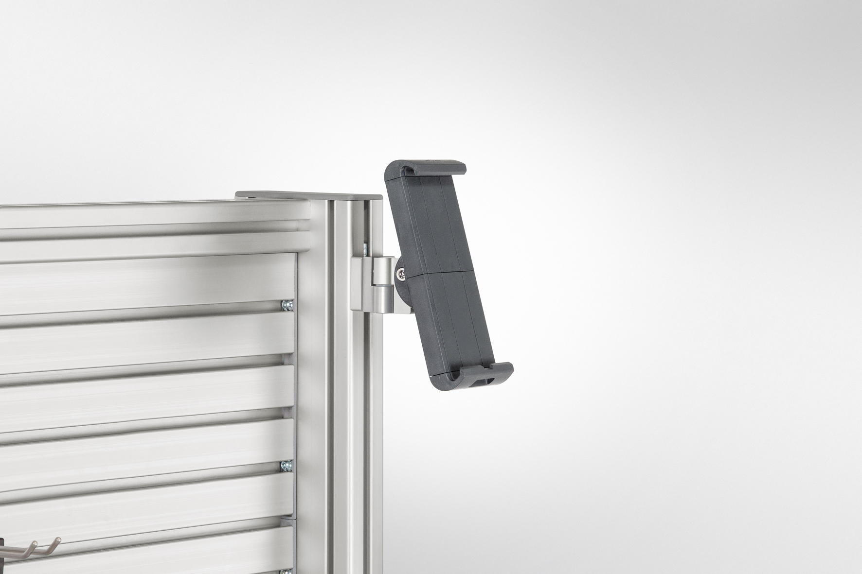 Using the new item products Tablet Arm 8 and Tablet Holder 8, workers in industrial environments can easily position their mobile devices, tilt them however they wish and rotate them 360°, meaning they never lose sight of the information they need. Whether on stationary work benches or mobile transport trolleys, there are countless mounting options thanks to the Line 8 system groove. Featuring a stable clamping mechanism designed for tablets ranging from 7 to 13 inches in size, the new components have a secure hold but allow users to remove their tablet in no time, too.