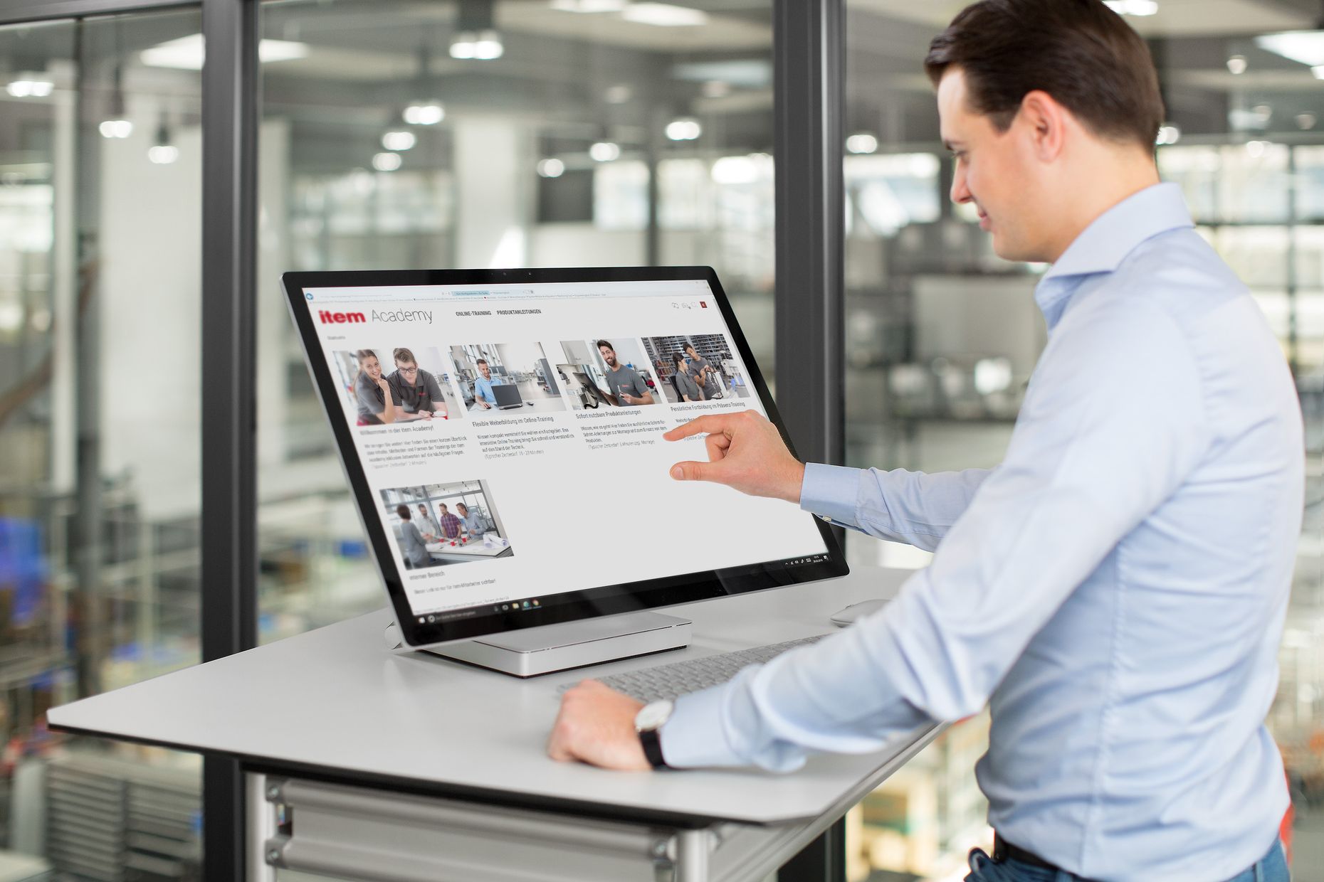 Flexible time management – no travel costs – short courses. E-learning is a useful companion to traditional teaching methods. item now offers free web-based training courses in mechanical engineering, work bench design, automation and lean production. The content and focal points of these courses are constantly being revised and expanded. The item Academy is aimed at both experienced and junior staff interested in practical training. Once users have registered on the item website, they can immediately start taking advantage of everything the Academy has to offer. Not only that, but they can also access all other online services from item without having to register again. All users need is an end device with internet access and an HTML5-compatible browser. item uses the open-source software ILIAS to prepare and present its learning materials. “The ILIAS learning management system offers the perfect foundation for flexibly editing topics and adapting them to accommodate country-specific differences,” says item project manager Joel Hesse. “Our item Academy is currently available in six languages, opening it up to a large number of users worldwide.”