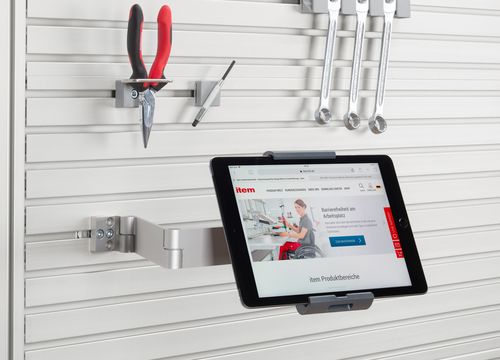 Using the new item products Tablet Arm 8 and Tablet Holder 8, workers in industrial environments can easily position their mobile devices, tilt them however they wish and rotate them 360°, meaning they never lose sight of the...